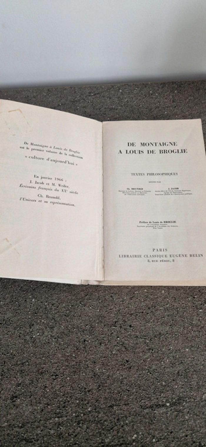 Livre ancien Textes philosophiques- De Montaigne à Louis De Broglie.
