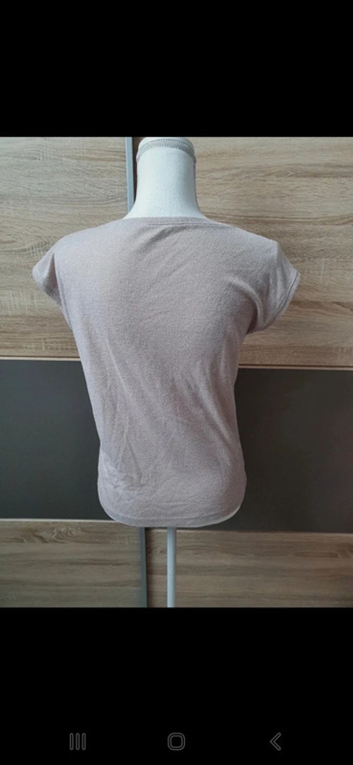 Tee-shirt pailleté taille S en très bon état. Couleur rose poudré avec paillettes argentées. #lilie210708femmetaille36