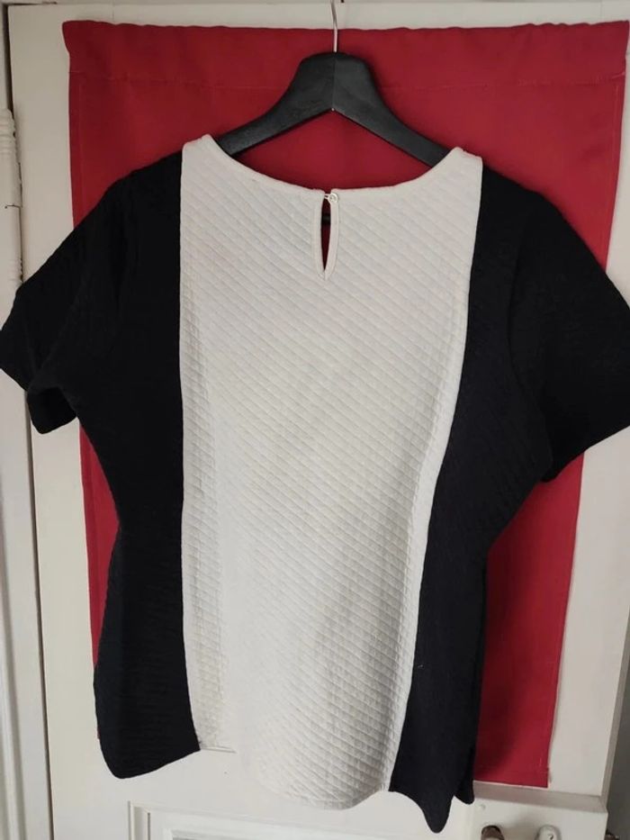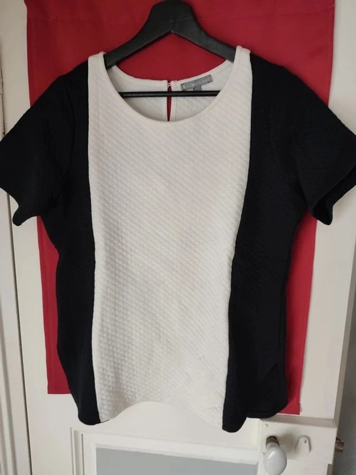 Tee shirt bicolore noir et crème matelassé 60% polyester 30% coton Ici et maintenant taille 42/44