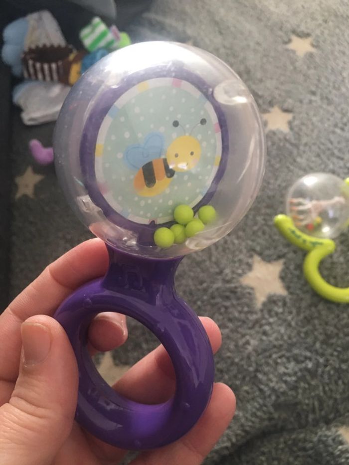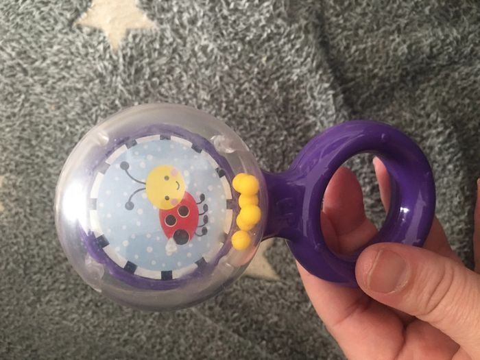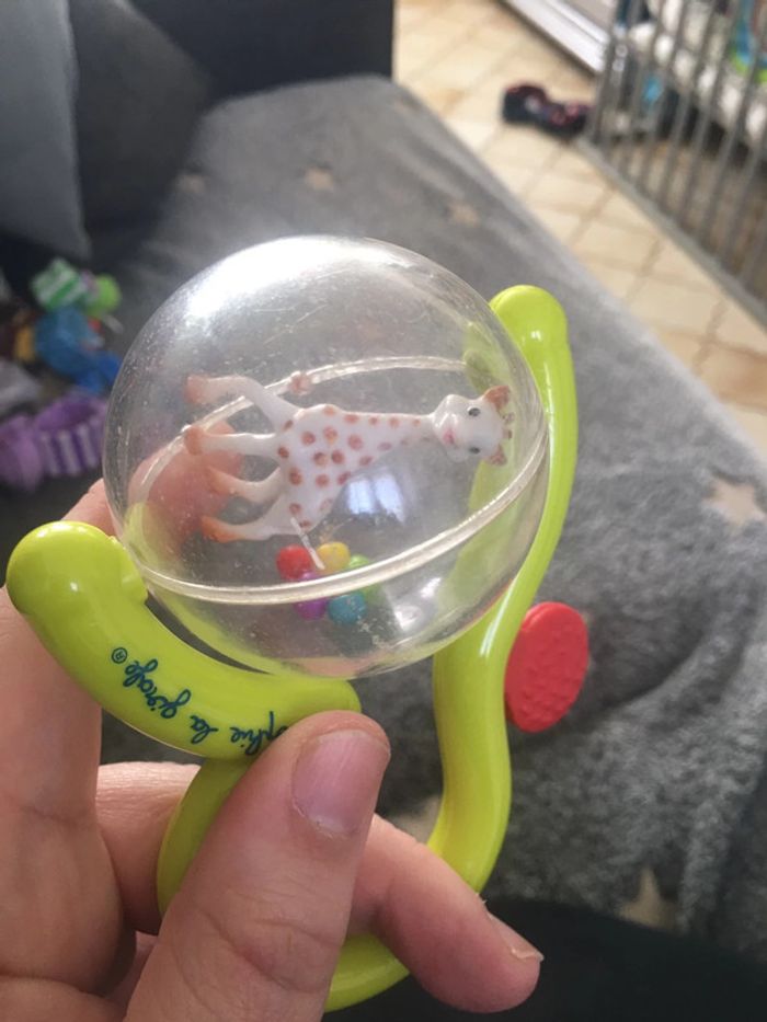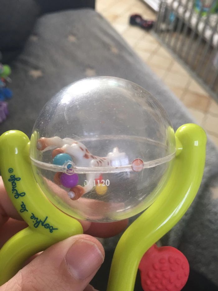 lot 2 hochets Sophie la girafe n’est plus attacher (voir photo) mais n empêche rien il fait toujours du bruit hochet violet trace d usure voir photo
