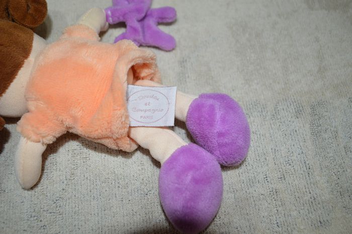 Doudou et Compagnie petite poupée orange pieds violets Doudou en bon état Etiquette présente #doudouninie48
