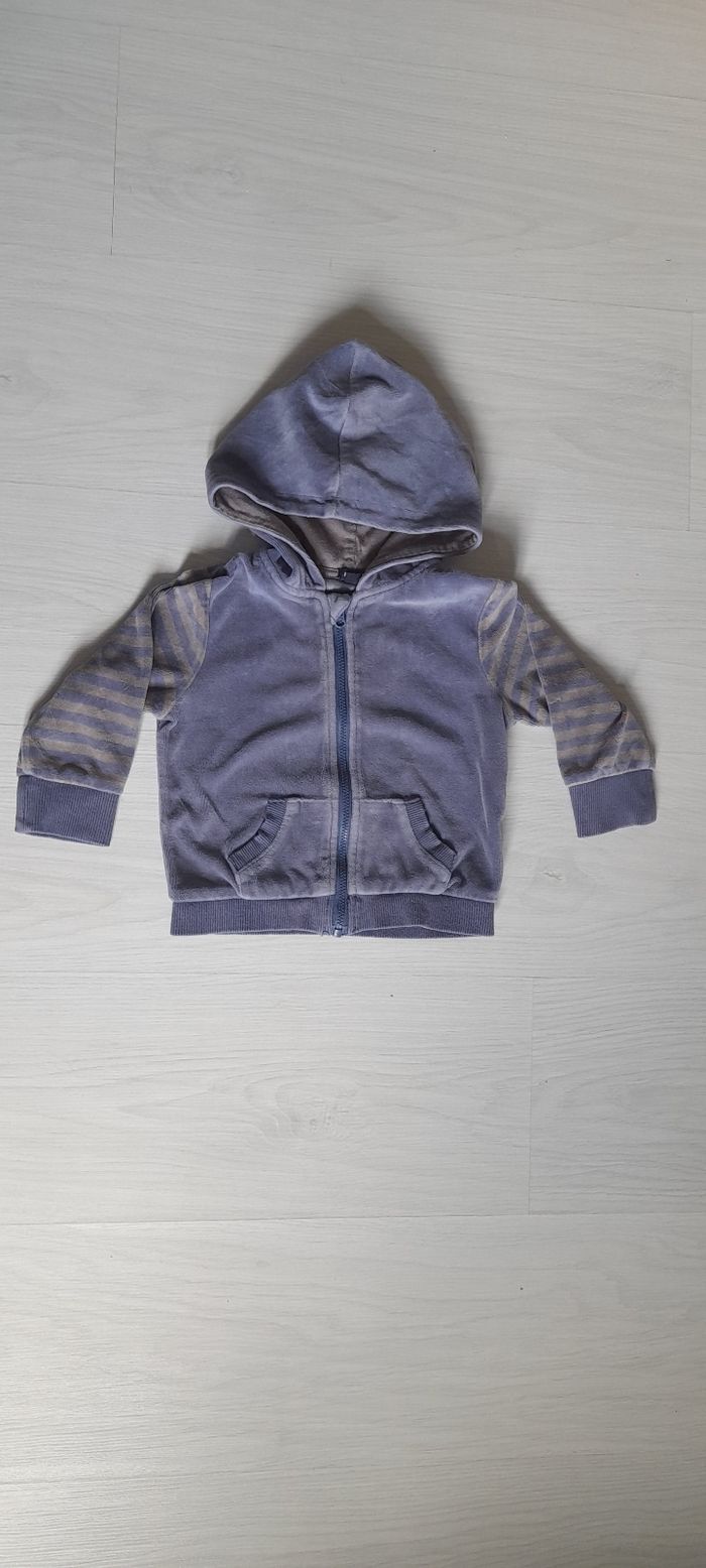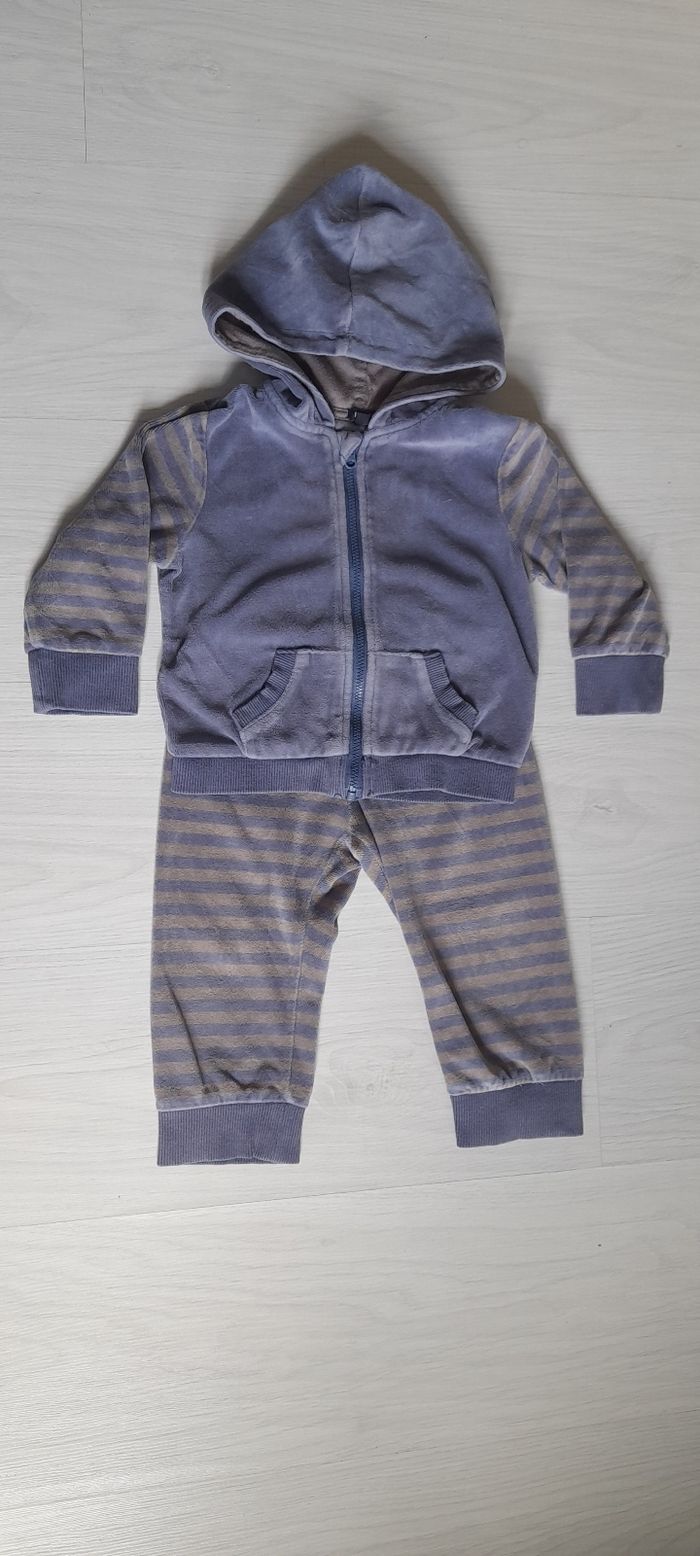 Survêtement T 18 mois Marque KIABI Couleur bleu et gris Veste. Attache central fermeture éclair avec capuche et 2 poches devant Pantalon taille élastique Très bon état