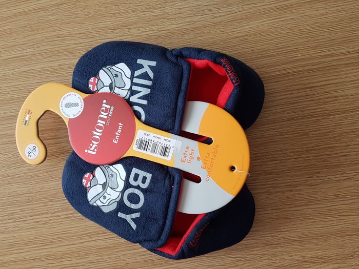 Ces slippers charmeront votre enfant sans aucun doute, leurs broderies « KING », « BOY » et le chien sont très ludiques. La suédine est une matière très douce au toucher, qui apporte tout le confort nécessaire à votre enfant. Ces chaussons ont une semelle à picots antidérapants pour encore plus de confort et de sécurité. Lavables en machine à 30°C.