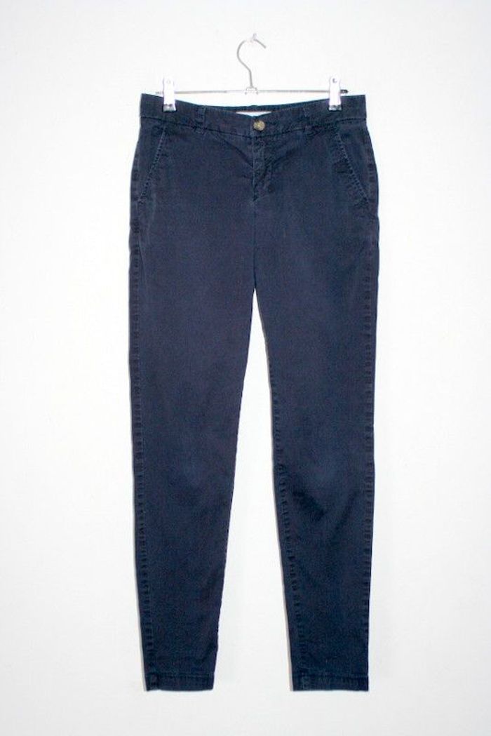 Pantalon bleu marine de chez H&M, taille 34, 95cm de long, 33.5cm à la taille, 97% coton / 3% élasthanne, 320g
