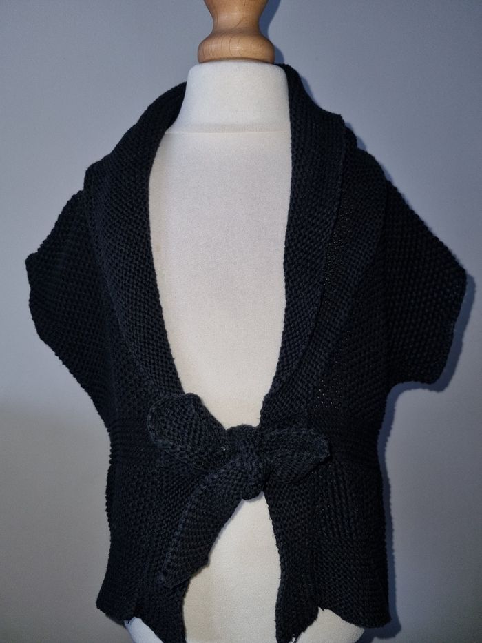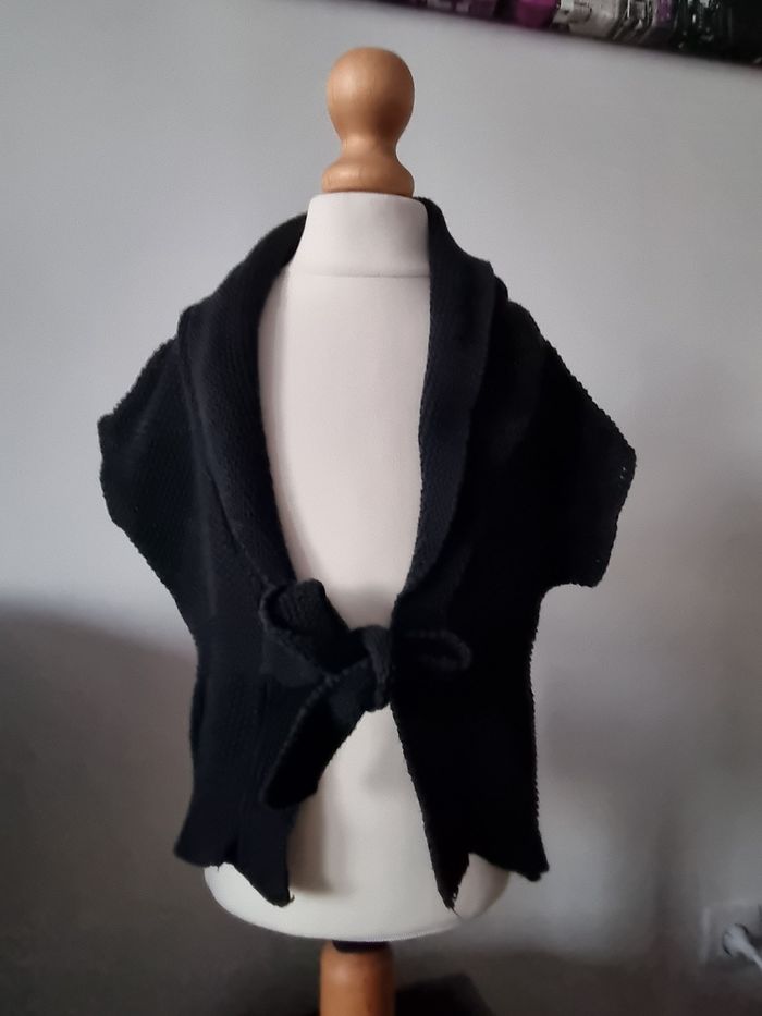 Joli gilet original forme chauve souris et fermé par 2 lien sur l'avant, plus long derrière. En TBE. Taille 4 ans, marque Kiabi #4anssevy57