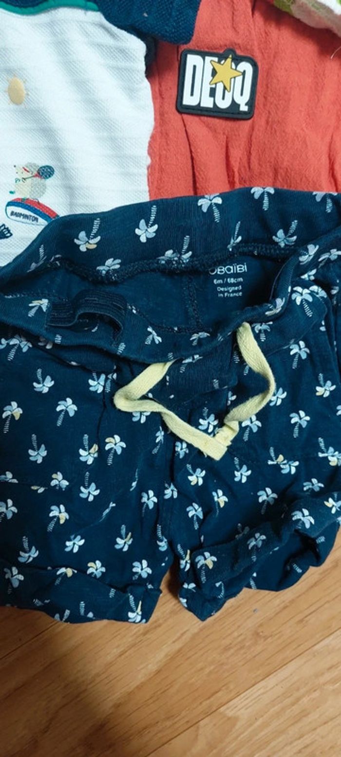 Lot taille 6 mois comprenant 4 tee shirts (1 sergent major , 1 tape à l'œil) 1 short okaidi 1 ensemble short + chemise La plupart n'ont jamais été porté