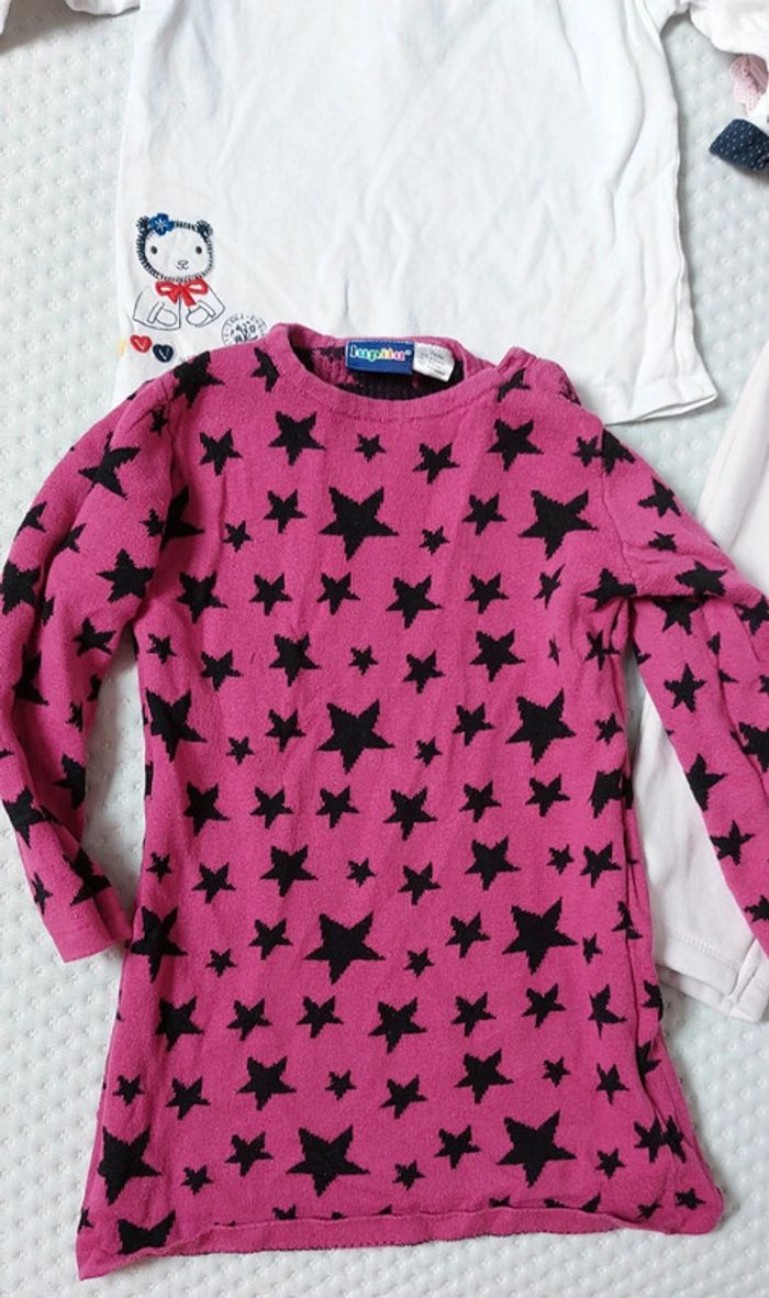 Lot comprenant Une robe lupilu Un tee shirt manches longues sergent major 1 bavoir bandana 1 pantalon chaud doublé grain de blé