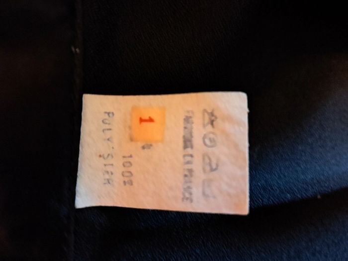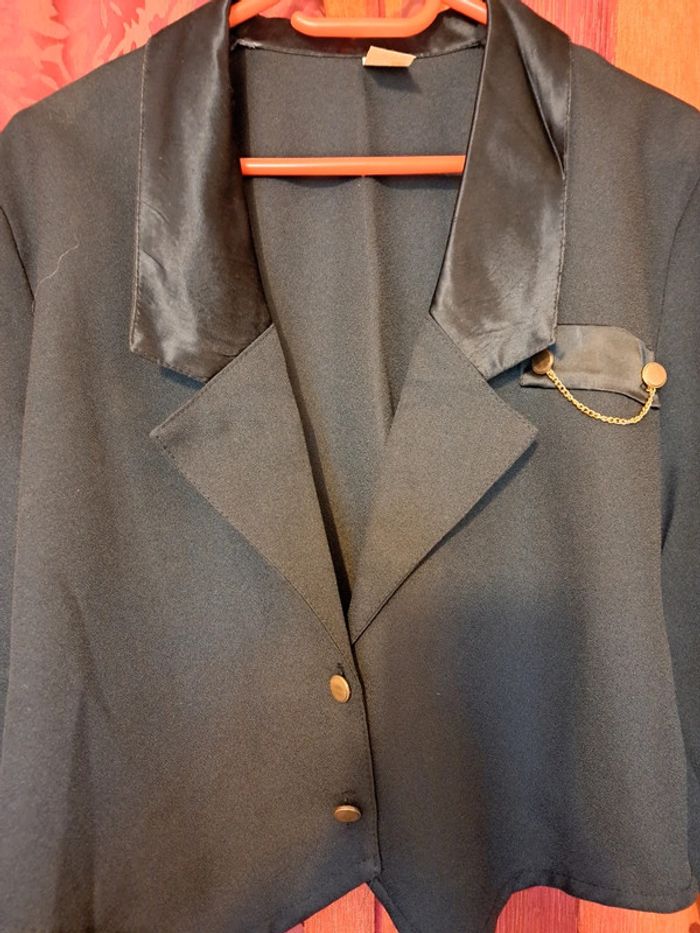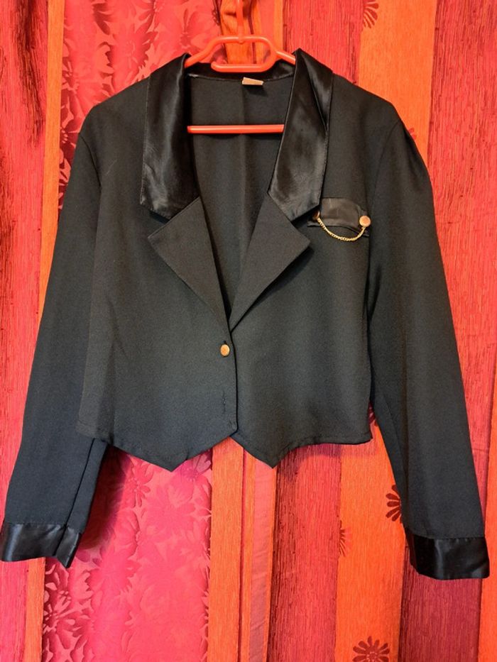 #pitchoune711femmeL Veste femme Taille environ 40 (marqué Taille 1 mais fait plus grand) Couleur noire Fabrication française Courte Petite chaînette sur le cœur 2 Boutons État impeccable