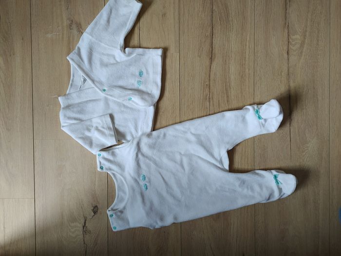 Jolie combinaison avec petits noeuds sur les pieds, et sa veste assortie. En velours Mon dressing est rangé par taille. Pour voir tous mes vêtements en 3 mois, cliquez sur le lien #celine_yiyi_3m Pour voir l'ensemble des tailles enfant, cliquez sur #celine_yiyi_enfant ATTENTION pour que les liens fonctionnent, pensez à supprimer vos filtres et recherches 😊