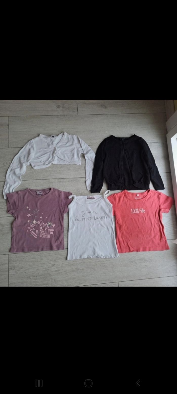 Lot 4 ans fille printemps été Lot bon état. Petits défauts 2 tee-shirts manches courtes 1 débardeur 2 gilets Marques Kiabi Z Vynil fraise Starfizz Bay line