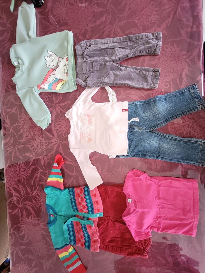Ce lot comprends : * 1 turbulette * 7 pyjamas * 6 bodies * 4 t-shirt manche longue * 1 t-shirt manche courte * 1 pancho * 3 robes * 9 ensembles #6moisfille Différentes marque de vêtements