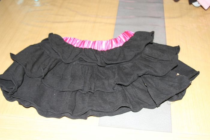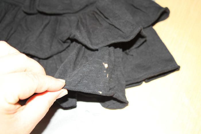 Jupe 4 ans noire Quelques petites taches de javel voir photo. Se voient quasi pas une fois portée due a la forme.