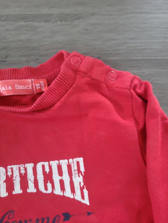 Joli pull rouge de la marque tissaia. Assez léger et se ferme avec 2 boutons au niveau du col. 🎀 18 mois 🎀 100% coton 🎀 tissaia 🎀 très bon état #elodiectr44pullbebe18mois