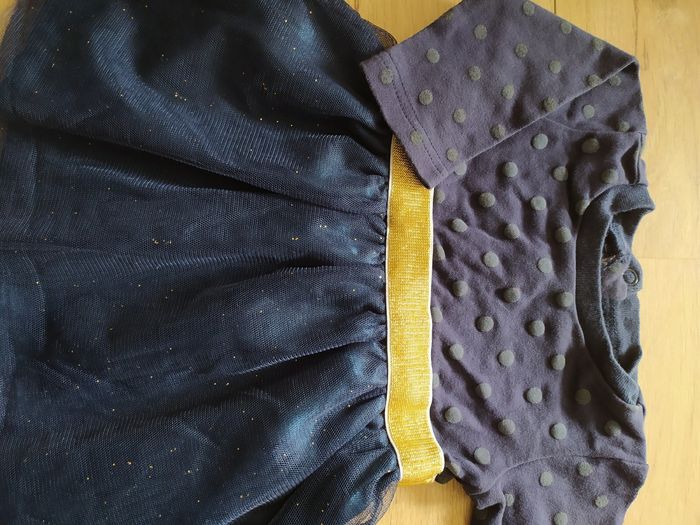 Jolie robe de fêtes avec le bas tout en tulle avec paillettes. Portée 1 seule fois Mon dressing est rangé par taille. Pour voir tous mes vêtements en 6 mois, cliquez sur le lien #celine_yiyi_6m Pour voir l'ensemble des tailles enfant, cliquez sur #celine_yiyi_enfant ATTENTION pour que les liens fonctionnent, pensez à supprimer vos filtres et recherches 😊