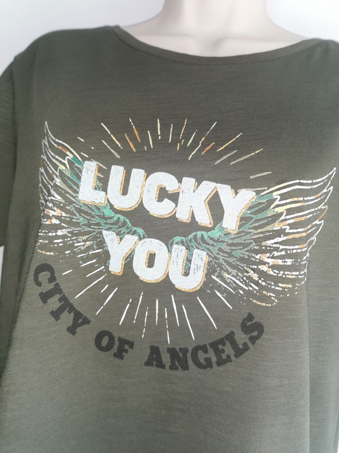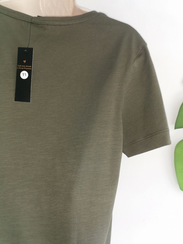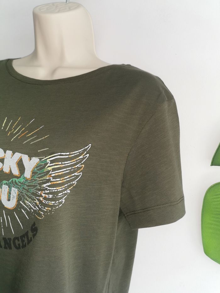 🙎‍♀️ ÉTAT DE L'ARTICLE: 10/10 ✅️ Avec étiquette🔖, jamais porté Tee-shirt kaki 👩 Captain Tortue Taille 1 correspond à une taille M • Matière: 100% coton • Coupe droite • Col rond • Manches courtes • Impression "Lucky You" pailleté ✨ sur la poitrine • Couleur: Kaki • Collection 2023 • 📏 Mesure épaules: 44 cm • 📏 Mesure sous aisselles: 49 cm • 📏 Longueur: 64 cm 💰Prix boutique: 49€ Parfait état👌, avec étiquette 🏷, jamais porté 🌹
