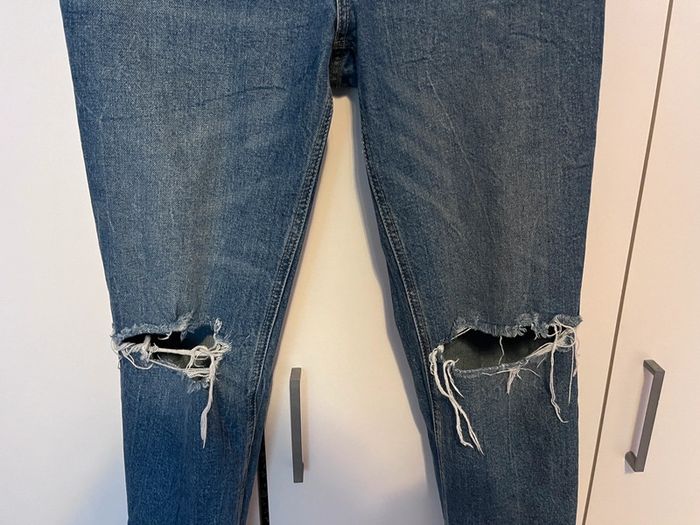 Vends jeans bleu De marque Zara Troué au genoux et déchirure aux chevilles Taille 44 Très bon état Envoi rapide