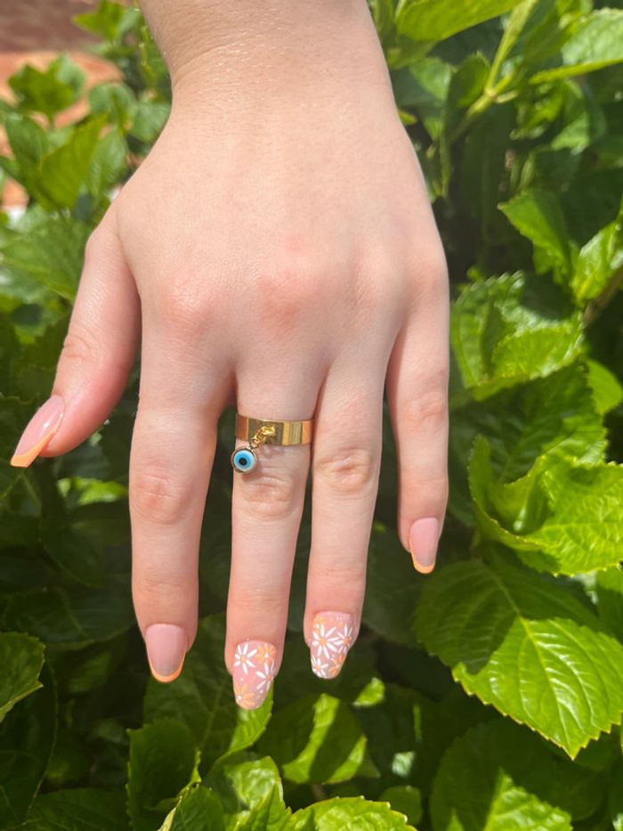 Vends bague en acier inoxydable Ajustable à la taille de votre doigt Couleur doré avec œil turc (🧿 signe de chance et protection) Très légère !