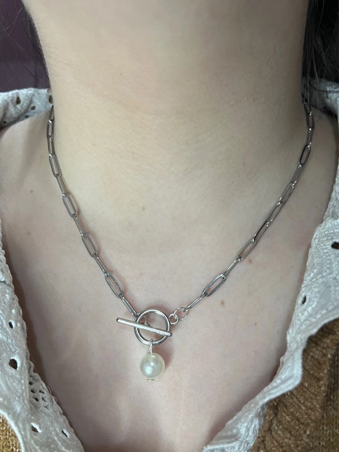 Vends collier en acier inoxydable Argenté Facile à mettre soi même grâce au fermoir sur l’avant du collier.