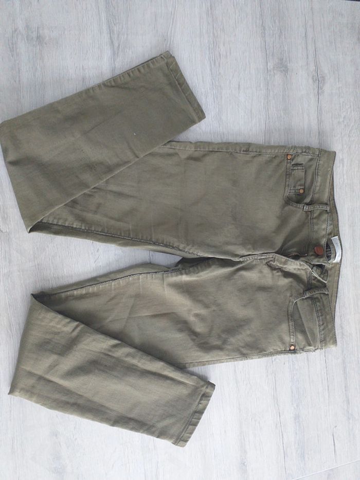 Vends ce jeans kaki. Porte mais état parfait. Taille 36/38