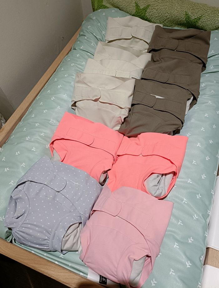 Couches Hamac Taille S, avec insert. Prêtes à l'emploi ! J'ai également un paquet de voiles jetables. Très bon état, insert neuf pour la plupart !