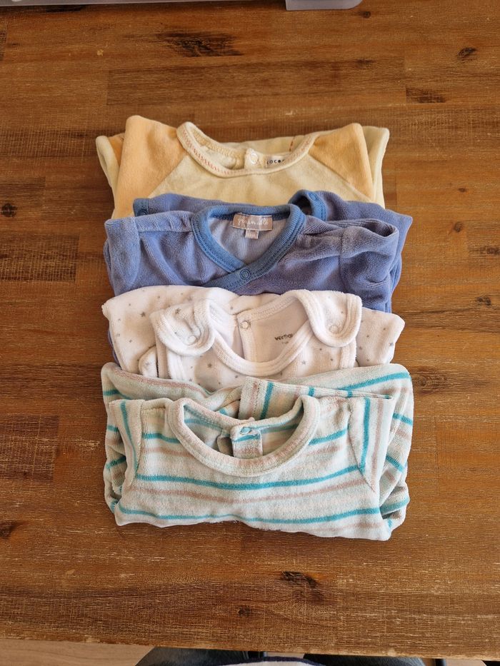 Lots de pyjamas en velours dont 1 sans manches taille 1 mois