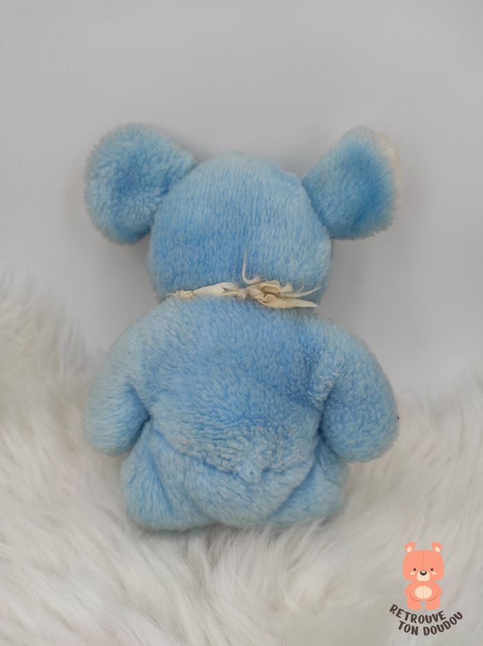 Doudou Peluche Souris bleue langue rose Vintage - photo numéro 2