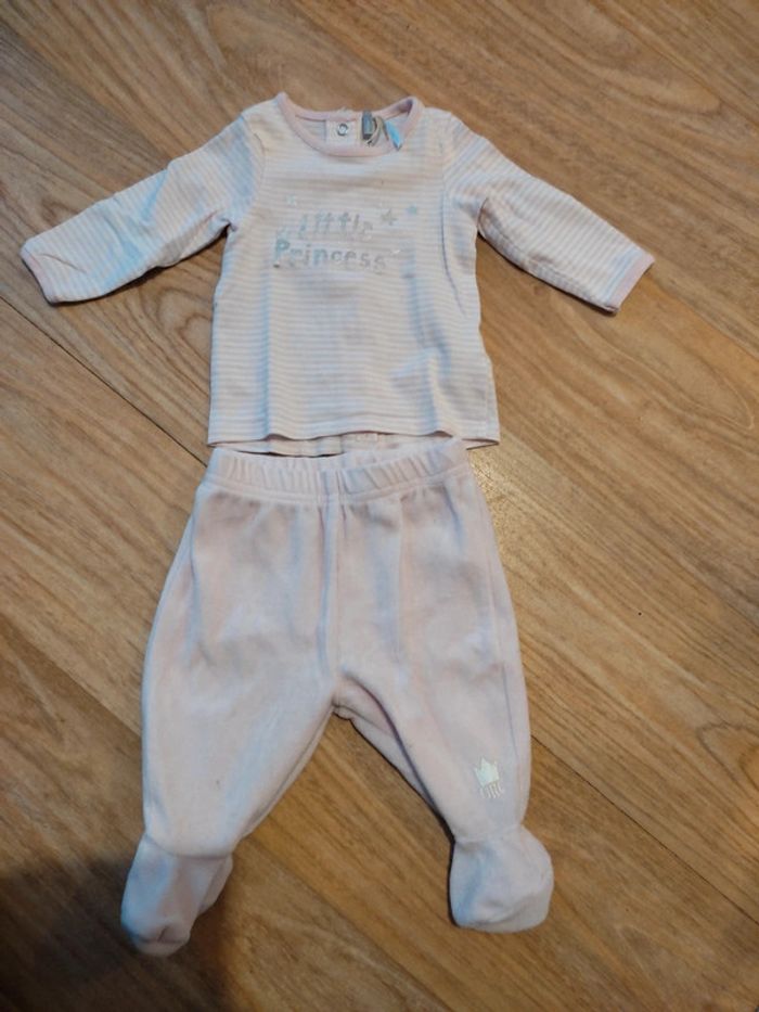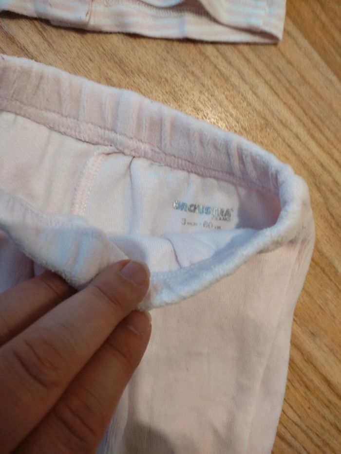 Ensemble deux pièces orchestra taille 3 mois. Tee-shirt manches longues pressions tout le dos et pantalon à pieds matière pyjama chaud.