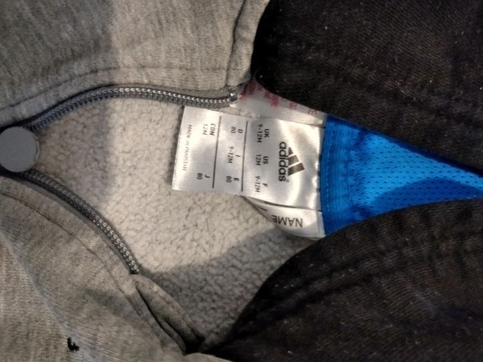 Sweat zippé de la marque Adidas taille 9-12 mois. Capuche.