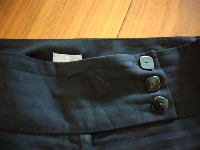 Pantalon habillé noir de la marque Naf Naf taille 40. Un bouton intérieur, une fermeture éclair et trois boutons sur la ceinture.