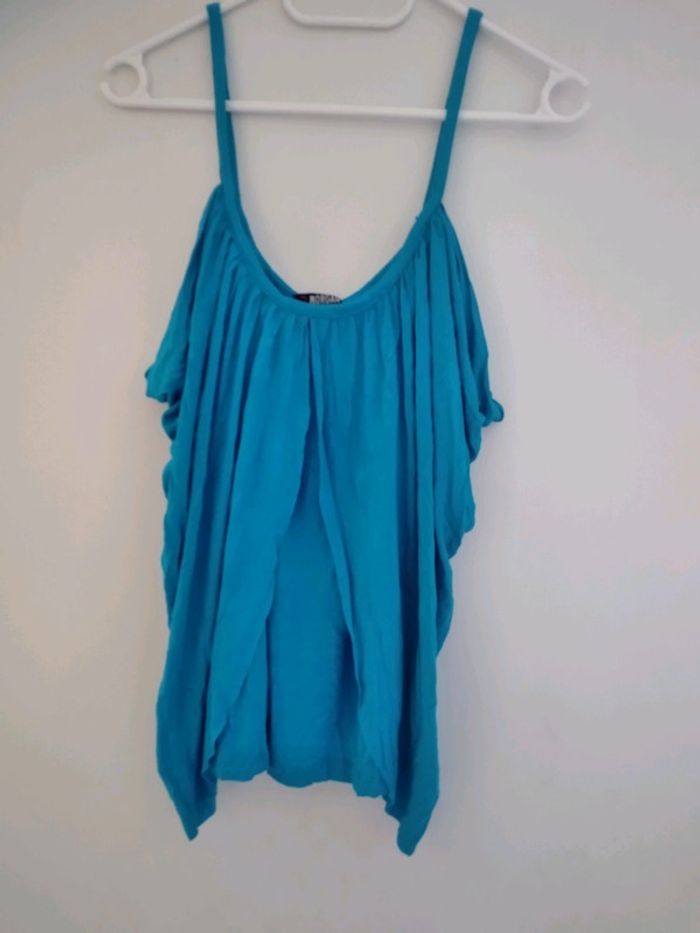 Débardeur avec manches chauve-souris selon la façon de le porter. Taille 38. Bleu canard 🦆
