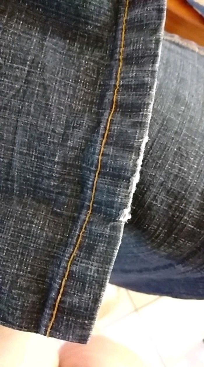 Jeans de la marque la city taille 38. Très bon état, très peu porté. Un tout petit peu éliminé (talon) dans le bas de la jambe droite mais ne se voit pas une fois porté. (Cf photo)