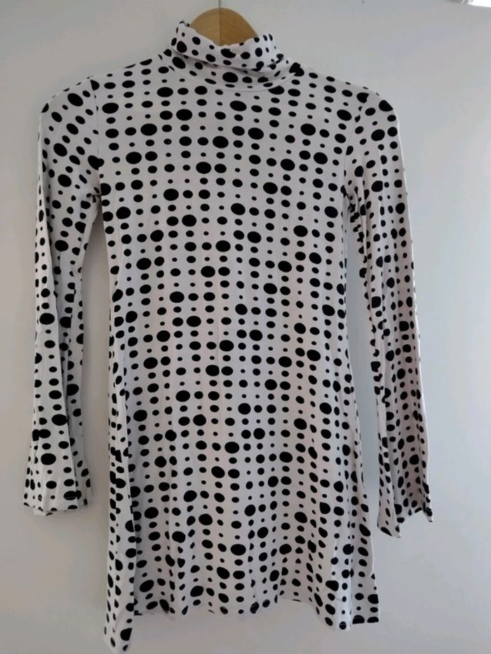 Tunique col roulé de la marque Naf Naf taille S. Blanche a pois noirs. Très bon état.