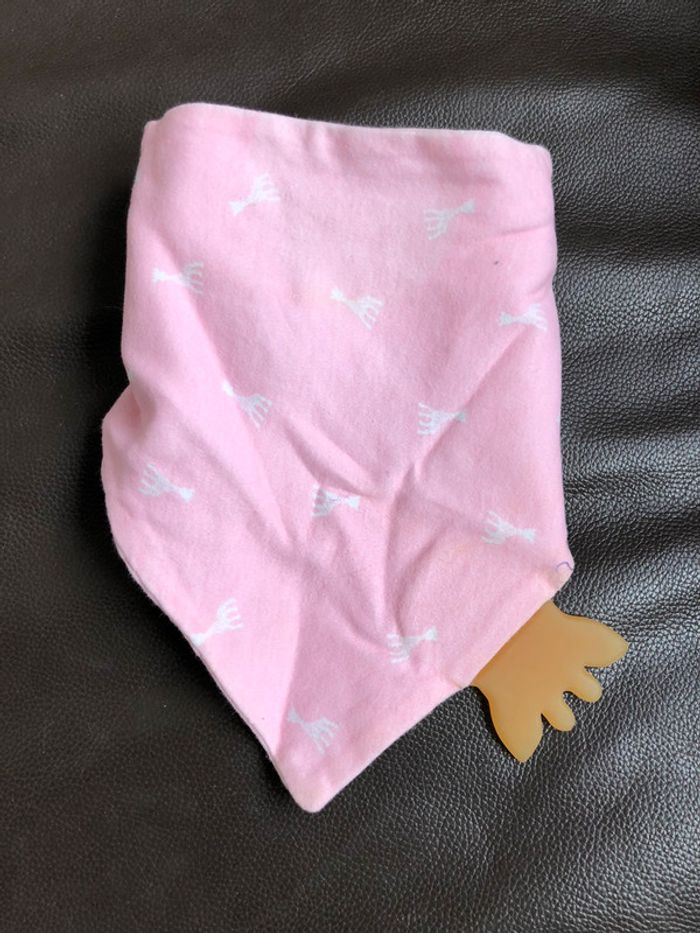 neuf jamais utilisé Intégrant une partie à mordiller, fabriqué à partir de caoutchouc 100% naturel et bio. Fixé au cou de bébé, le bandana permet de protéger bébé et ses vêtements lors-qu’il salive. #val3340neuf