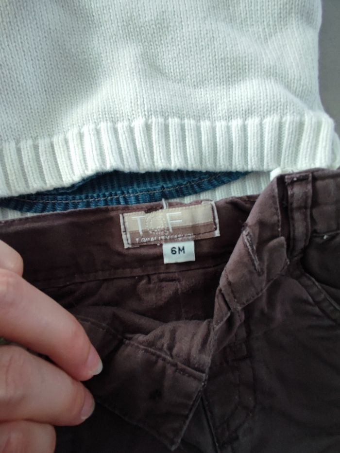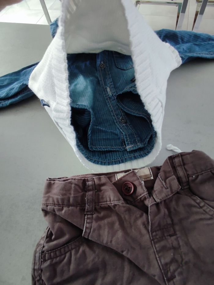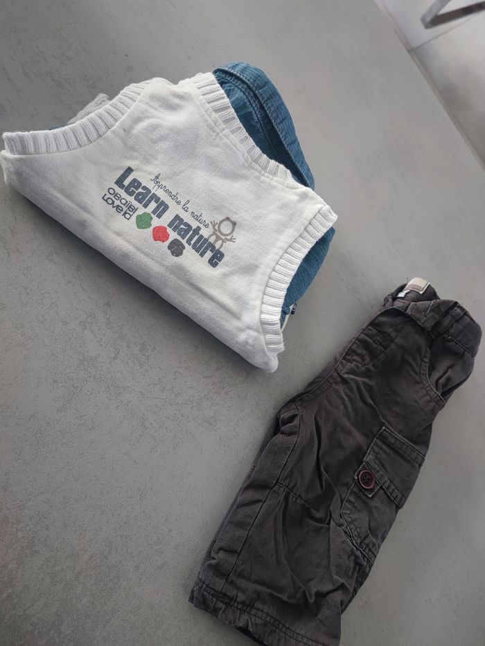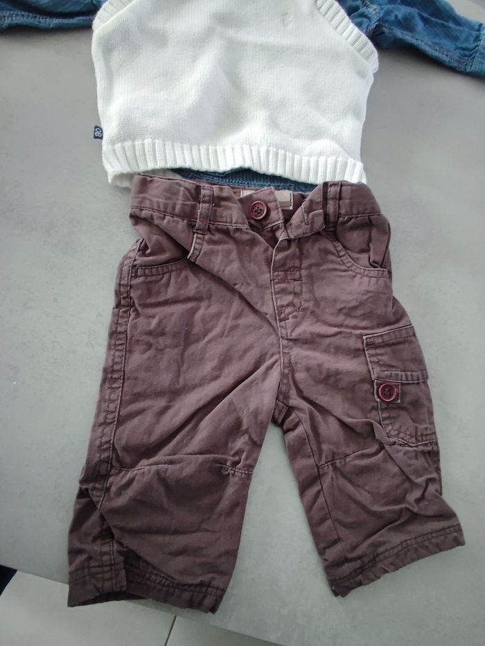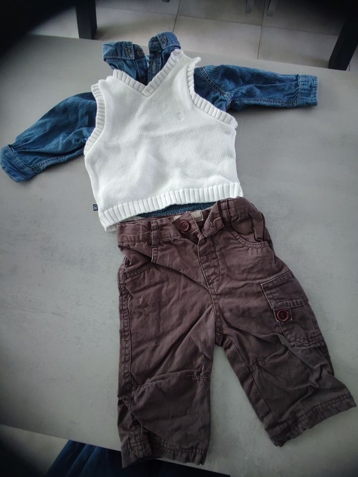 Ensemble 3 pièces, un pantalon, une chemise et un pull sans manches Différente marque Taille 6 mois