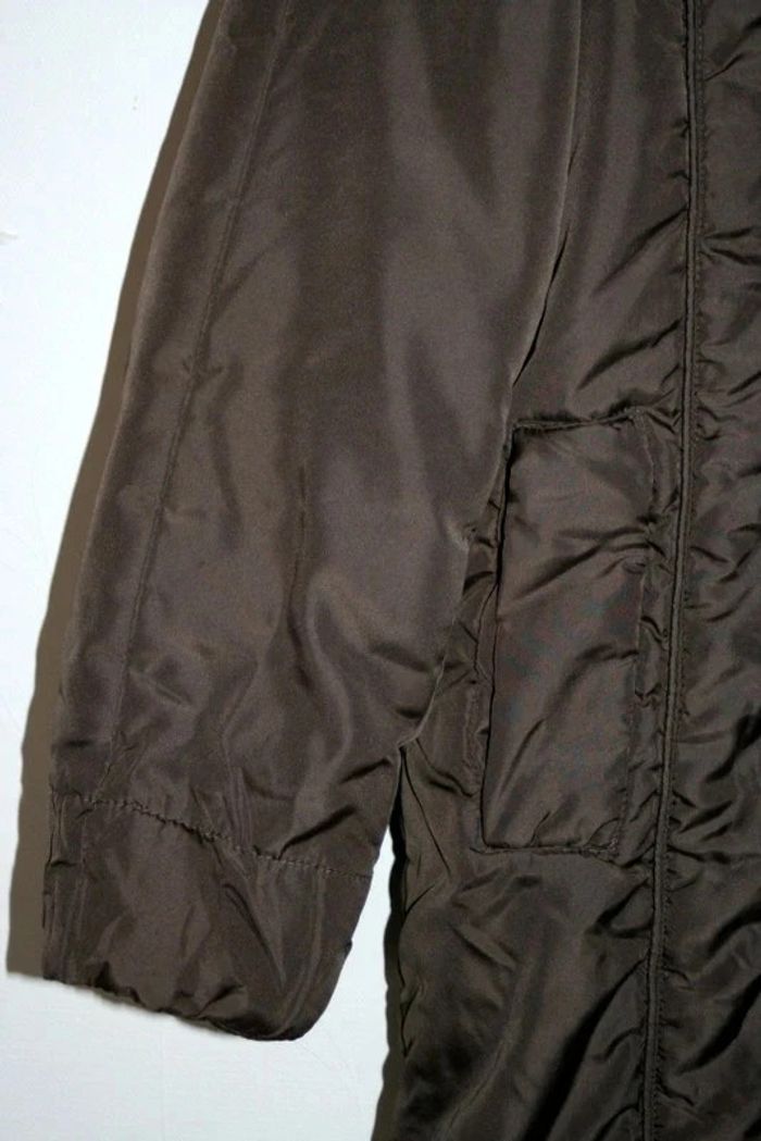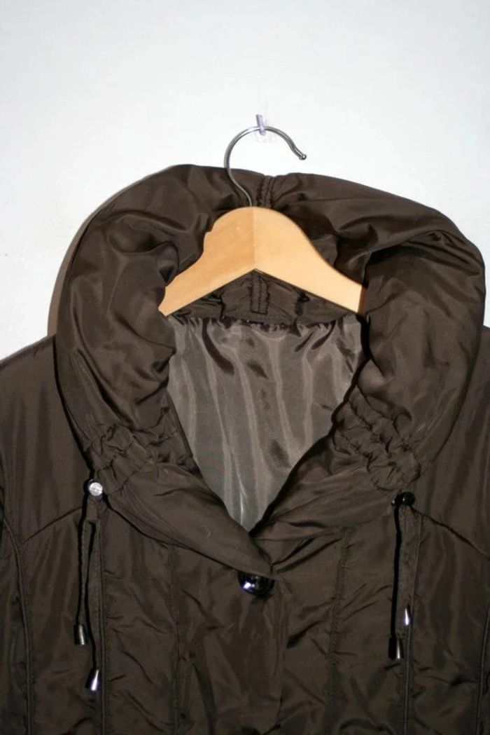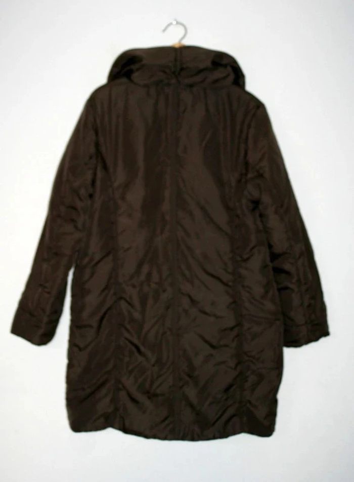 Parka marron avec col boule, fermeture éclair + boutons, taille 46, 85cm de long, 620g