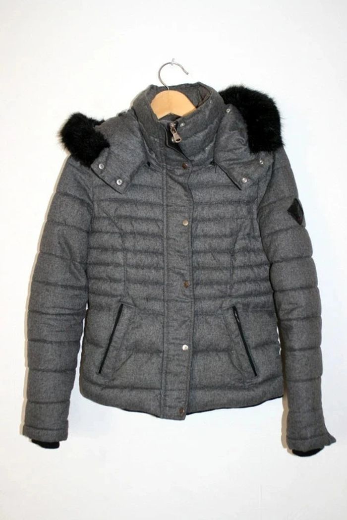 Doudoune grise Pimkie taille petit S sans étiquette, capuche amovible, fourrure de la capuche amovible, fermeture éclair + pressions, 1.2kg
