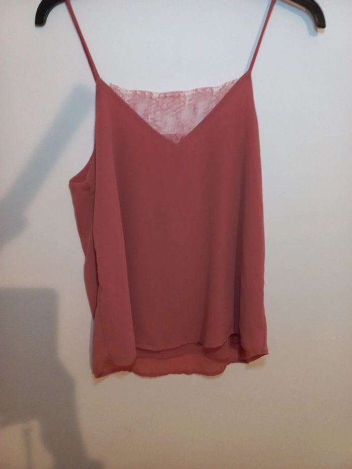 Débardeur/ haut saumon corail Doublure totale a l'intérieur Col en v avec dentelle Vintage dressing Taille M Lot et réduction possible :) #bctopheliefemmeM