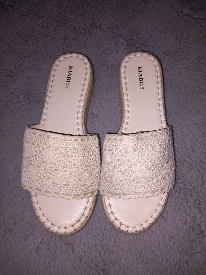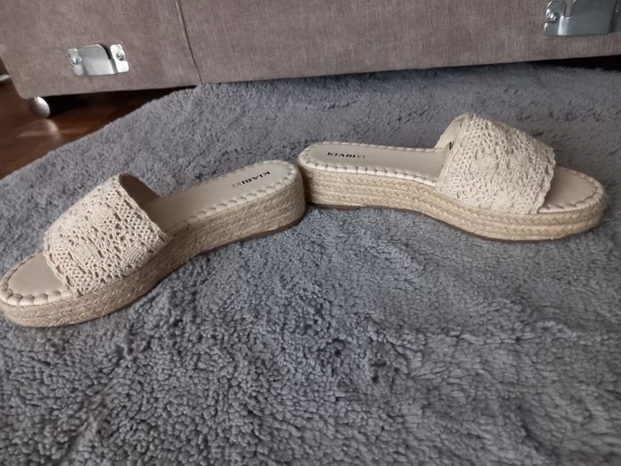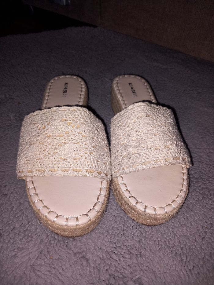 Sandale femme petite plate-forme rigide Couleur beige avec détails brodé Pointure 37 Marque Kiabi Portée 2 fois Très bon état