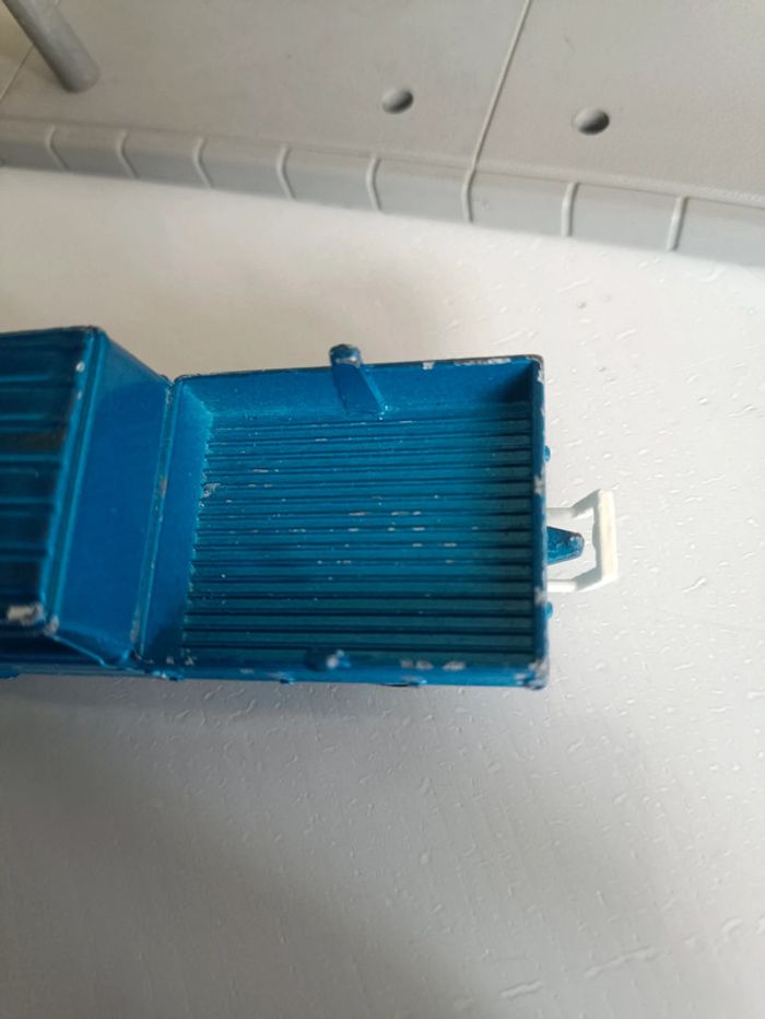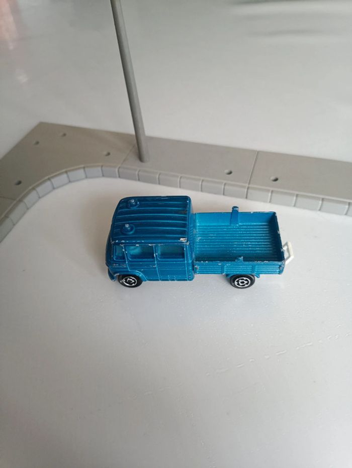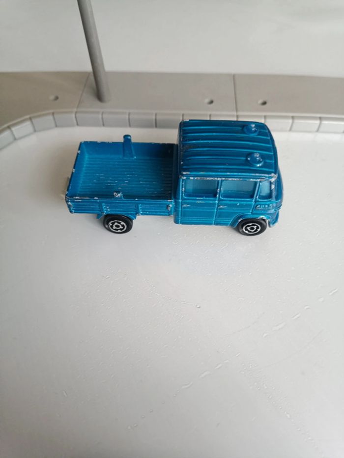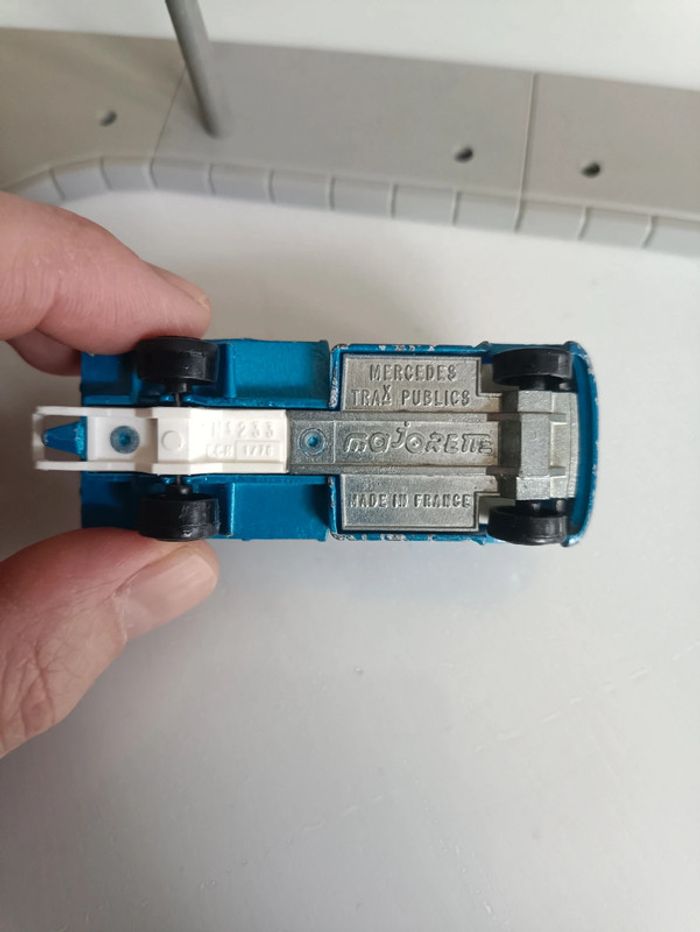 Camionnette travaux publics. Majorette 233. Peinture écaillée, manque la bâche arrière et girophare abîmés.