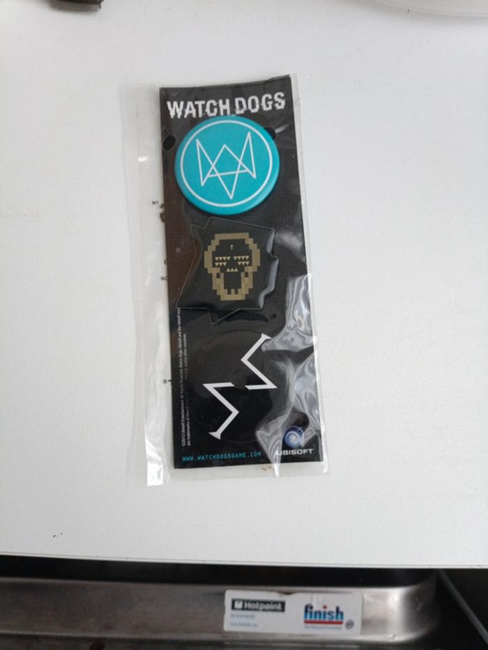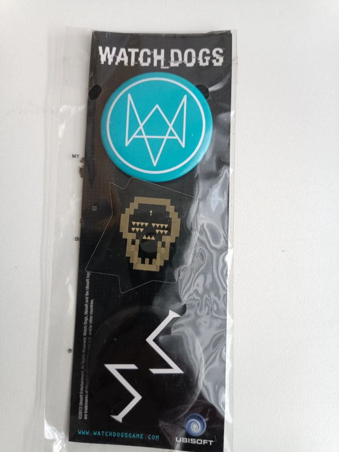 Lot de 3 badges issus du jeu vidéo watch dogs. Neuf encore emballé.