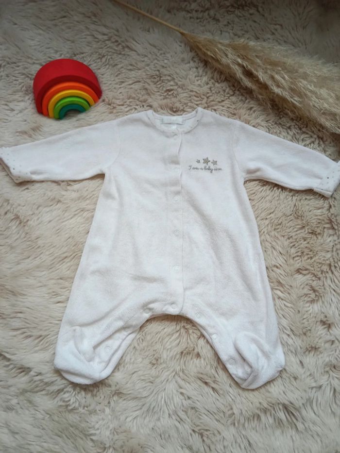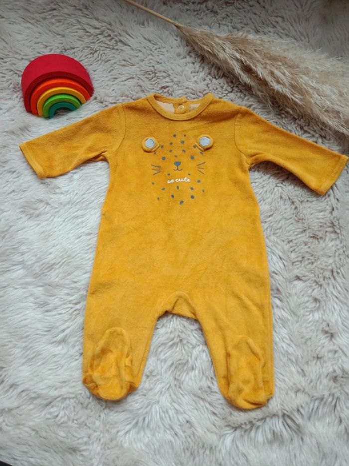 Lot pyjamas en bon état, celui de droite a une petite tâche sur la manche (voir photo) Taille 3 mois