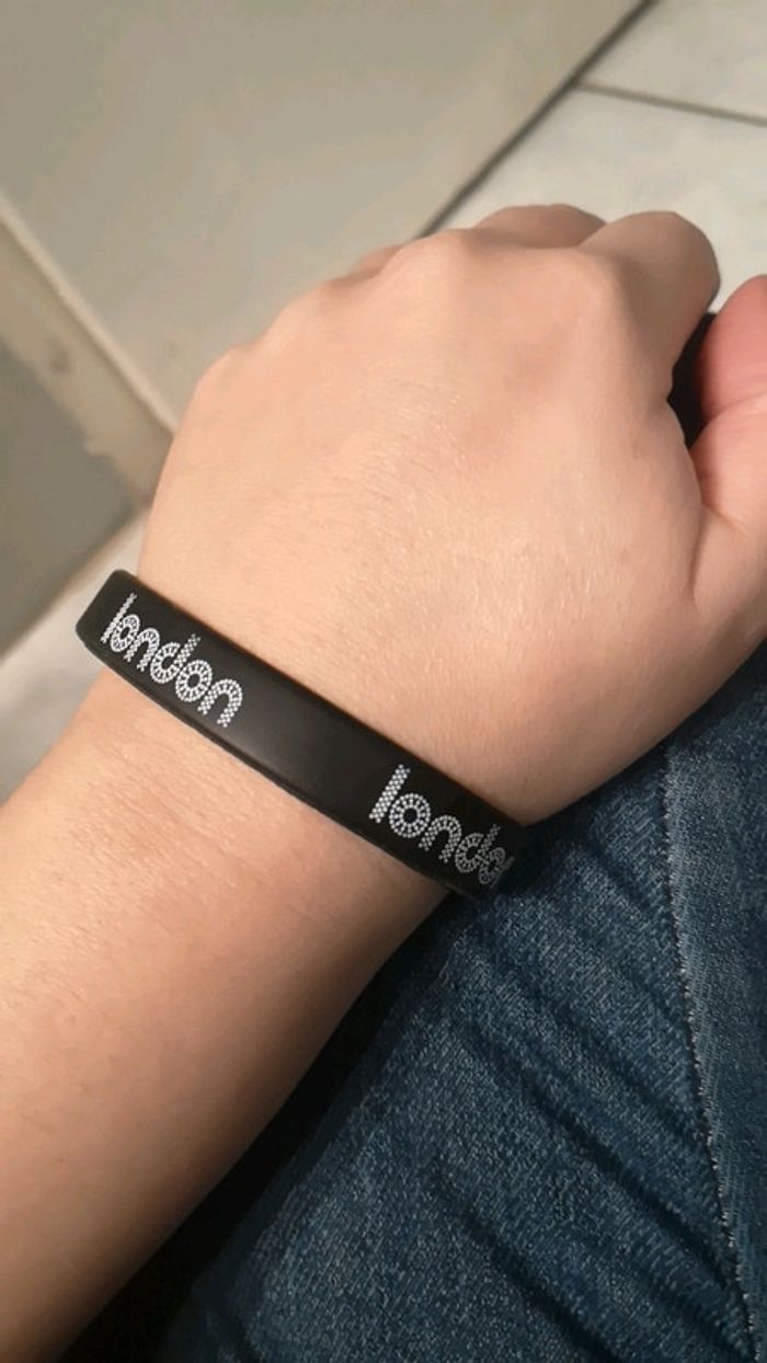 Bracelet noir matière caoutchouc inscription london Acheté à Londres