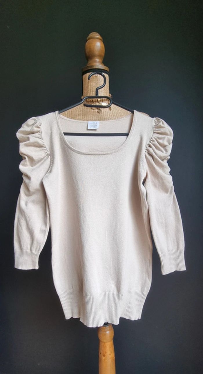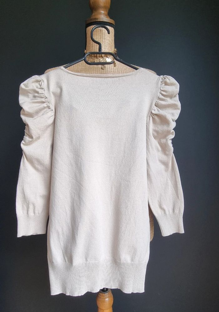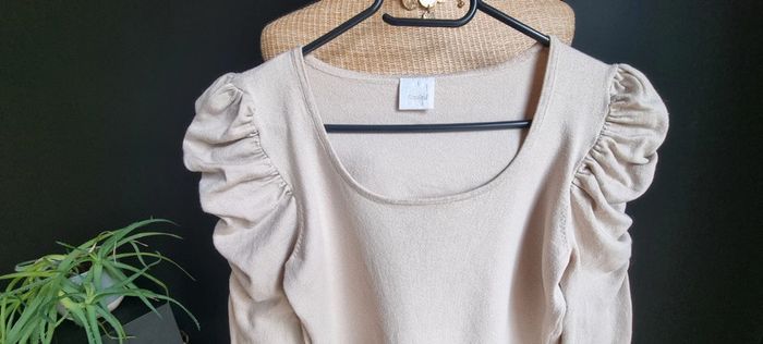 Pull léger Camaïeu Taille S Col rond, épaules bouffantes, manches 3/4
