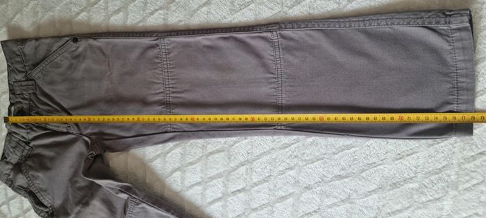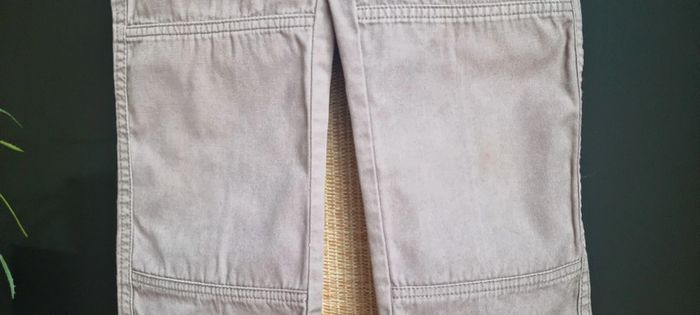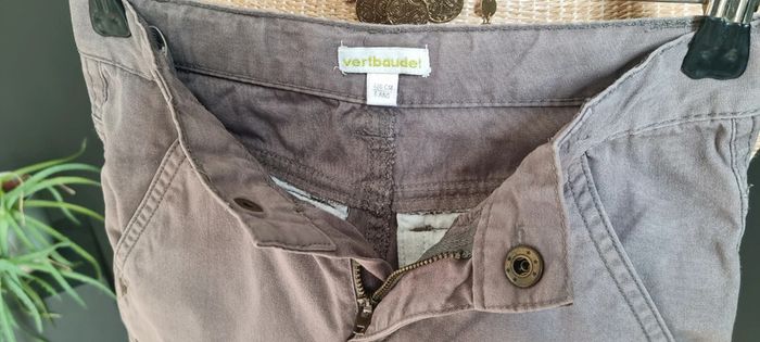Pantalon en toile Verbaudet 8 ans Couleur taupe Taille ajustable par élastique intérieur Défaut à signaler : très légèrement tâché au niveau des genoux et une point blanc au niveau de la ceinture dans le dos.