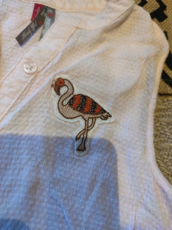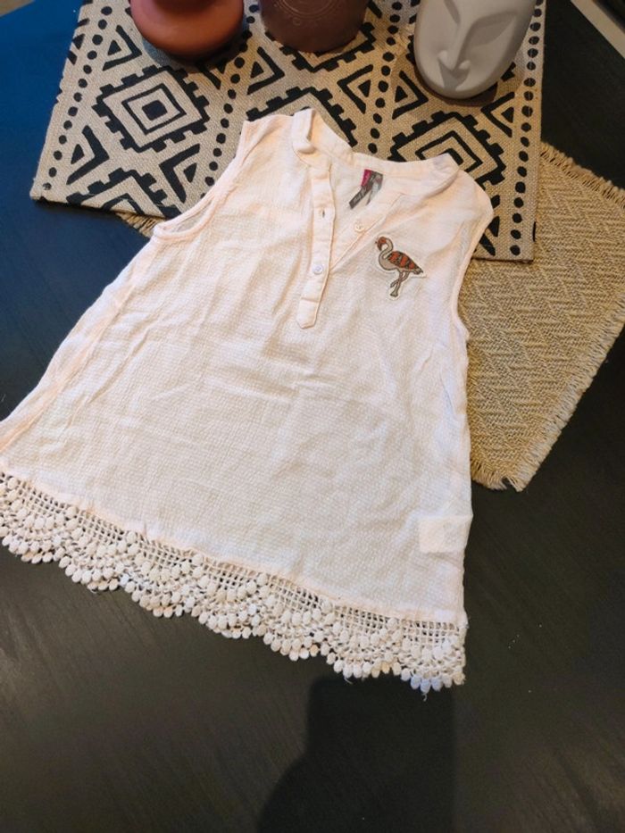 Chemise sans manche rose clair, taille 3 ans, en très bon état, peu porté, léger et fluide