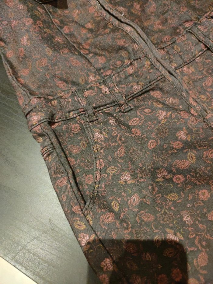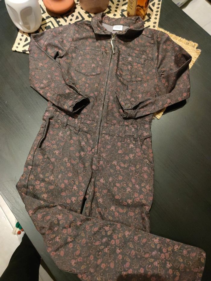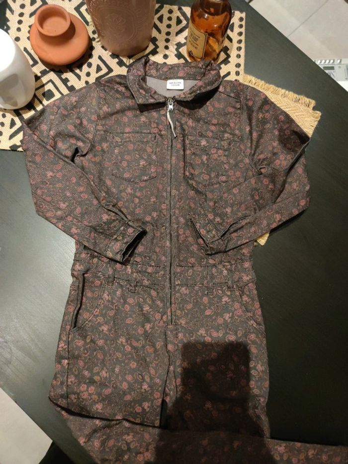 Combinaison fleurie, taille 7 ans, en très bon état, peu porté, fermeture par tirette de l'entre jambe au cou, passant ceinture, poches sur l'avant
