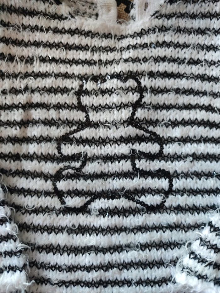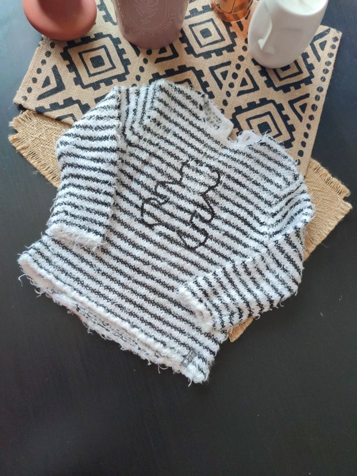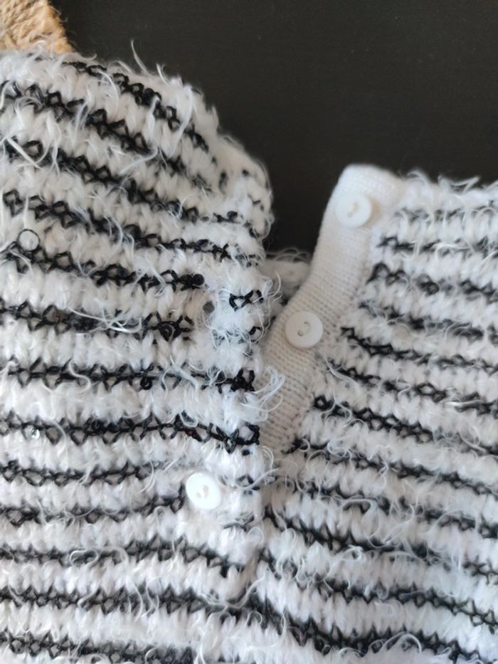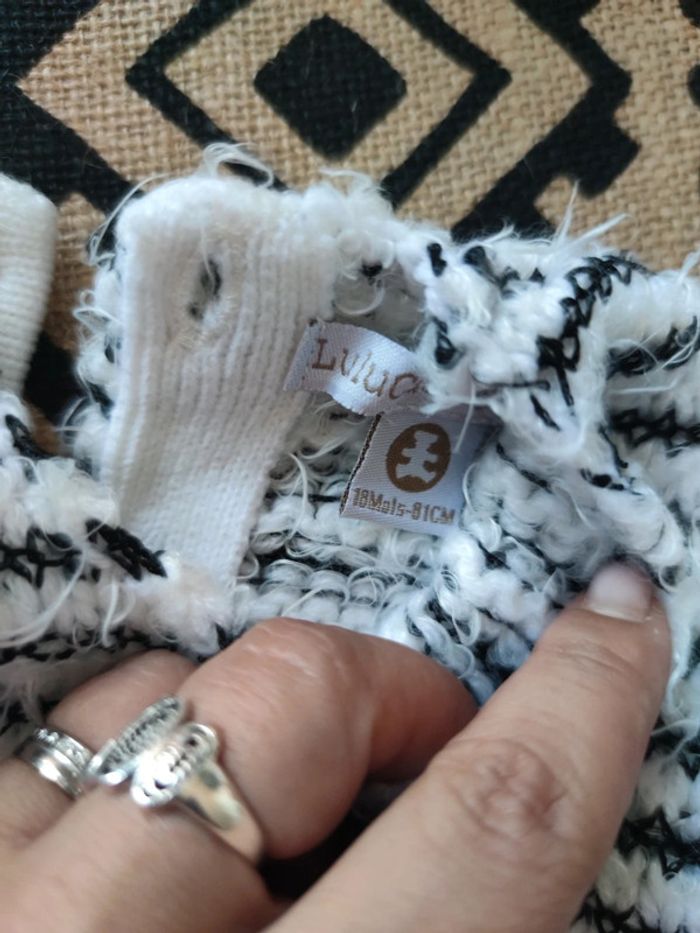 Pull fin Lulu castagnette noir et blanc, taille 18 mois, en très bon état, peu porté, fermeture par boutons sur l'arrière
