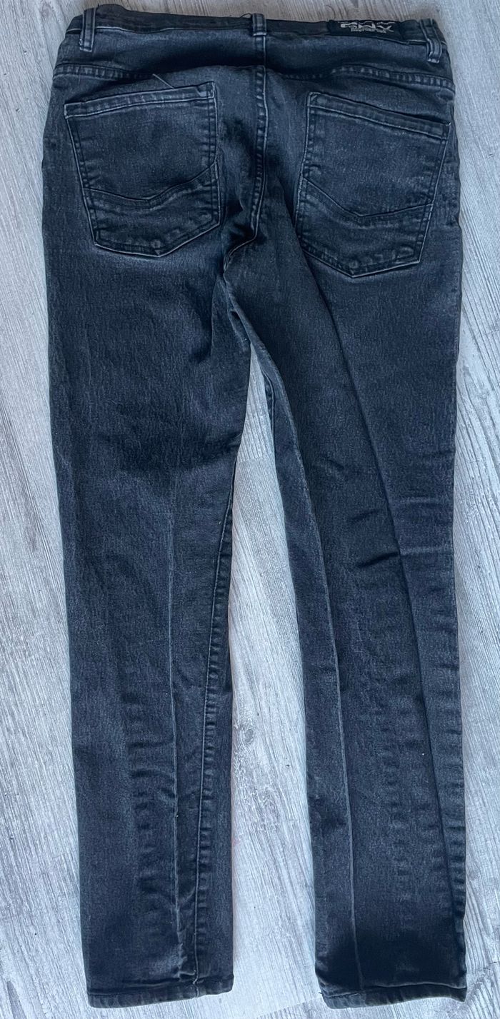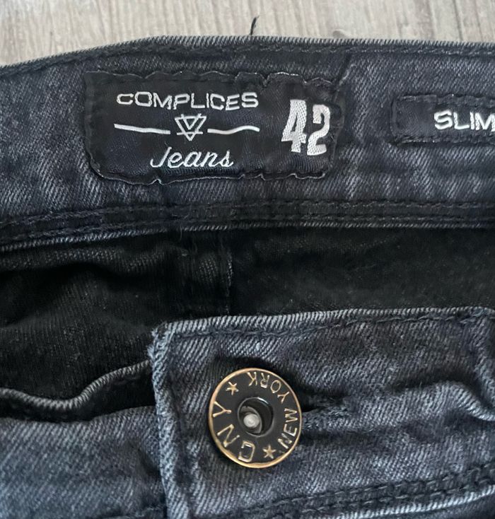 Pantalon jean de la marque Complices Taille 42 Présence d’une petite tache de peinture à l’arrière (voir photo) Occasion, état satisfaisant