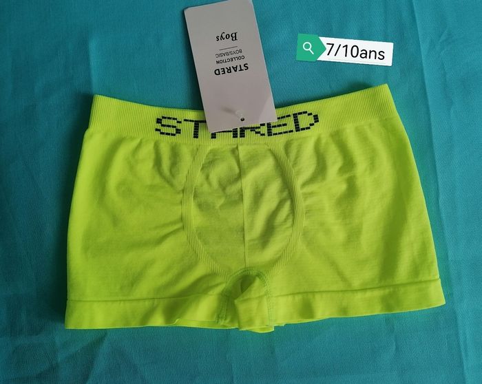 Boxer garçon, taille 7/10ans. Vert fluo. 85%polyamide. 10%elasthane. 5%polyester. Neuf avec étiquette. 3.50€