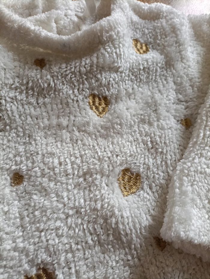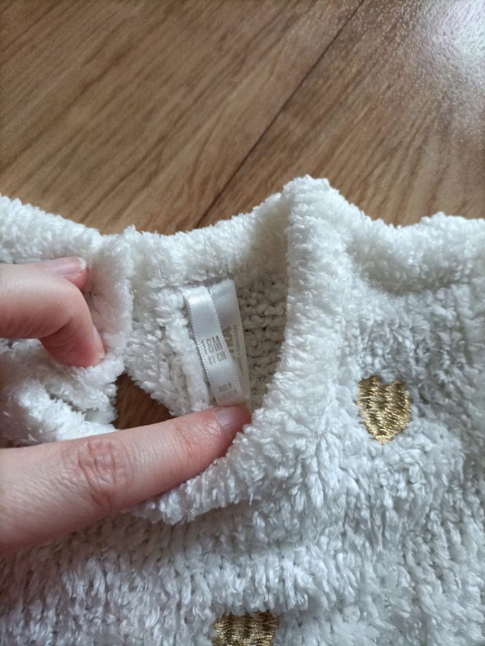 Pull chenille blanc cassé et petits coeurs dorés Marque orchestra Taille 18 mois